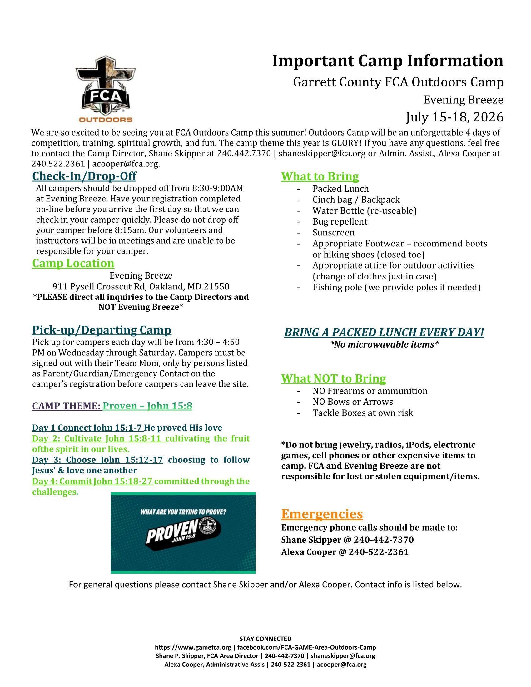 Questions can be directed to Camp Director Shane Skipper (contact info @ bottom of page)